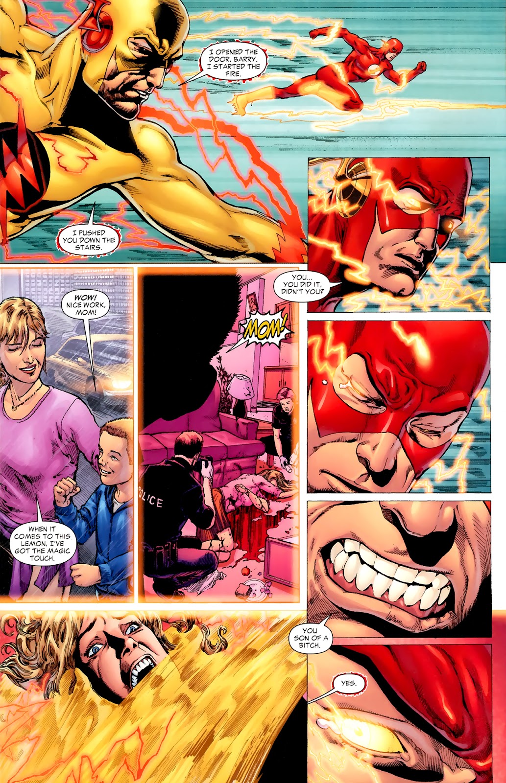 -Thawne le revela a Barry que todo las desgracias que paso en su infancia como la muerte de su perro, su quebradura de brazo o cuando se incendio su casa fueron acciones orquestadas por él para hacerlo sufrir, lo cual hace que Barry reflexiona y llegue a la conclusión que es finalmente anunciada por Thawne, el fue quien asesino a su madre, Nora, Lo cual después derivó a Flashpoint.